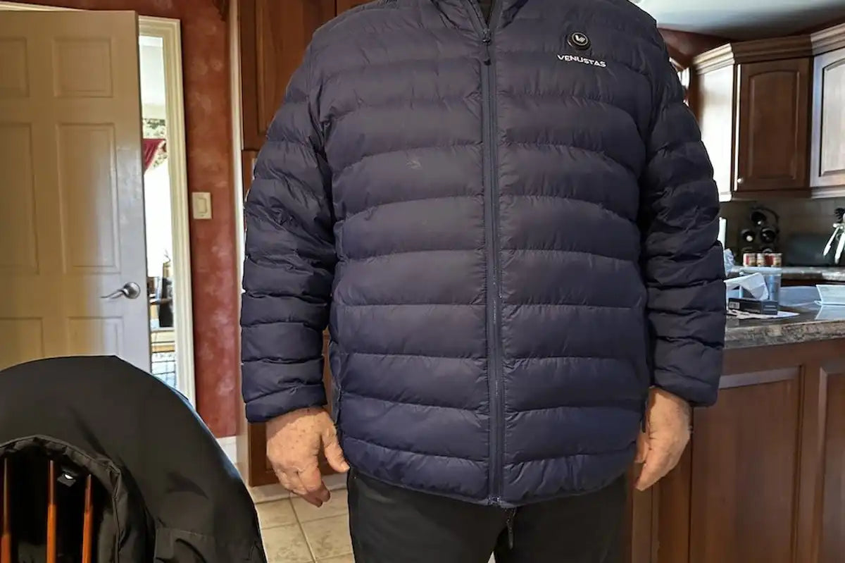 The Heated Puffer Jacket uses low-voltage USB power and ourThermoSphere™ heating system, which features insulated carbon fiber panels. Built-in temperature regulation prevents overheating, and all components are tested to meet international safety standards.